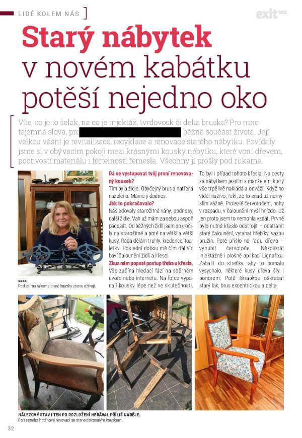 Mojí hlavní pracovní náplní v zaměstnání je přemýšlet hlavou. Pro správné fungování hlavy mi bylo třeba nějaké rukodělné činnosti. Něčeho, co mě bude bavit, něco, co můžu po sobě zanechat, otisknout do toho svou stopu. A tak přišla kdysi na řadu první židle natřená na zeleno. Nevěděla jsem nic o renovacích nábytku, ale věděla jsem, že chci a že to dokážu. Byla to někdy hra pokusů a omylů, ale měla jsem nekonečnou touhu proniknout do němých příběhů starých věcí a vdechnout jim nový život. A tak jsem zaplnila renovovanými kousky nejen svou domácnost, ale začala tvořit na objednávku. Snad už jsem nasbírala tolik zkušeností a dovedností, abych byla schopná si poradit skoro s čímkoliv.