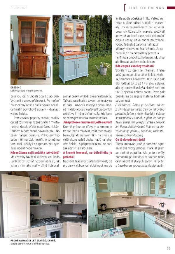 A tato velká rodina vlastně stojí za mým počinem – vytvořením e-shopu. Snažím se Vám nabídnout v eshopu všechno, co pro své kutění a renovace nábytku potřebujete. A hlavně ty produkty, pod které se mohu sama podepsat a doporučit. A jestli nevíte, jak na to, přihlaste se do jednoho z mých kurzů. Naučíte se pár nových věcí, užijete si hezký den v příjemné atmosféře…..