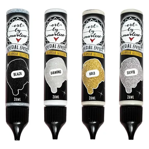 Mimořádně třpytivé glitry projektům dodávají glamour a lesk, elegantně zvýrazňují detaily. Třpytky jsou smíchané s tekutým transparentním pojivem, které třpytky přilepí a po zaschnutí zcela zprůhlední. Baleno v malé tubičce, která skvěle padne do ruky. Praktický dávkovač zajistí jednoduché a přesné nanášení i na ty nejmenší detaily. Práci zvládnou i děti.
