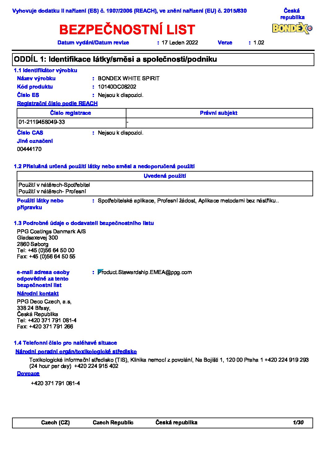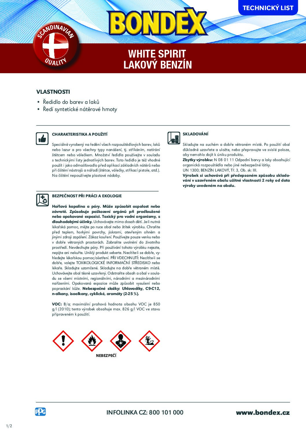 Bondex White Spirit – 1l – (výborné např. při zapylení povrchu nebo lepkavém povrchu po nátěru)