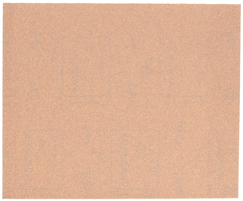 Arch latexového papíru 230 × 280 mm, zrno aluminium oxide, pojivo pryskyřice, rozptyl zrna polootevřený, stearatová vrstva proti zanášení.