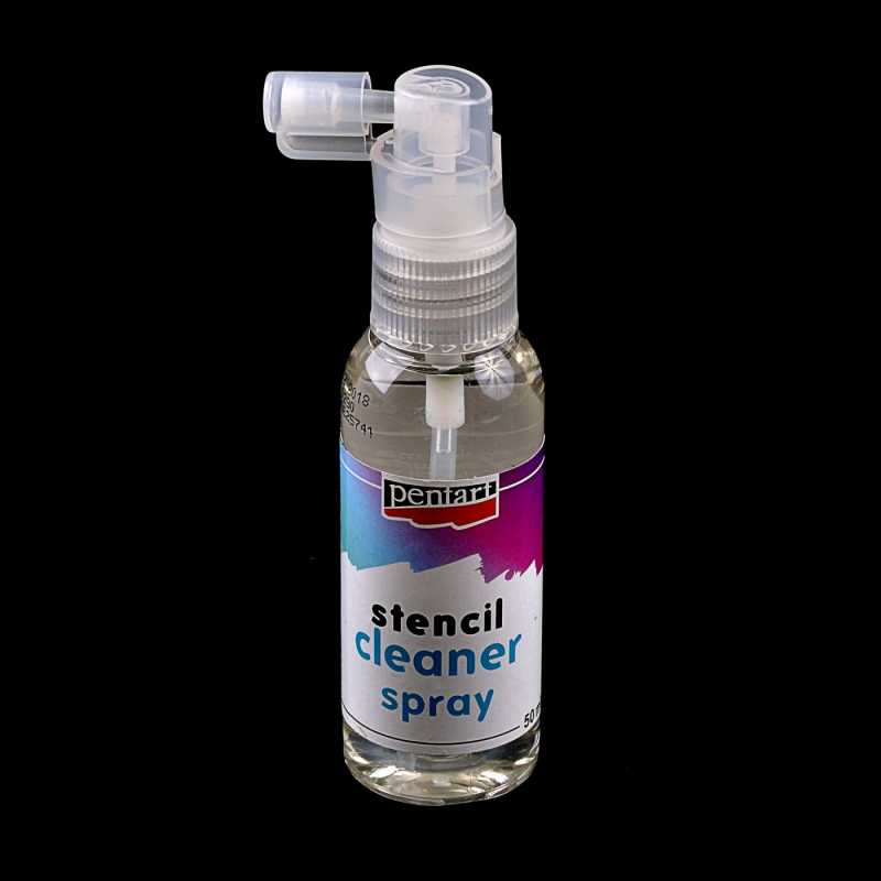 Čistič šablon ve spreji (Stencil cleaner spray) značky Pentart je vodou ředitelný roztok, který je určen ke snadnějšímu čištění šablon po jejich znečištění barvami. Roztok nastříkejte na znečištěná místa, nechte pár minut působit a opláchněte mýdlovou vodou.