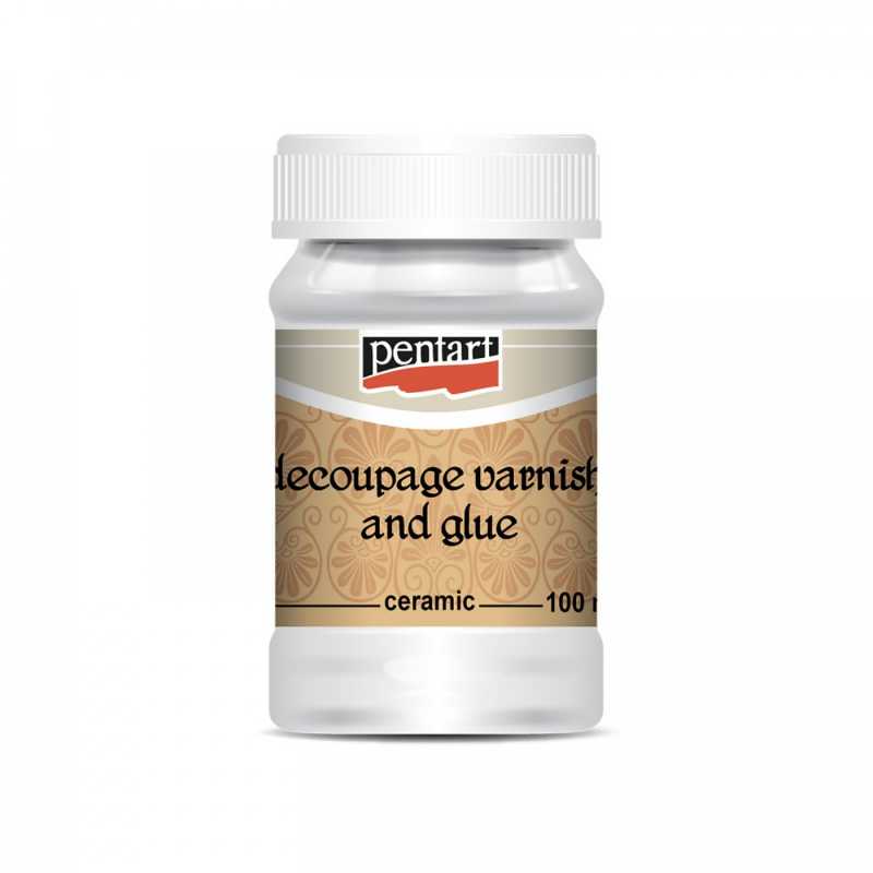 Decoupage lepidlo pro keramiku (Decoupage varnish&glue for ceramic) je vodou ředitelné lepidlo s lakem, které se používá při ubrouskové technice. Po uschnutí zanechává na povrchu voděodolnou vrstvu. Lze jej použít k dekorování předmětů z terakoty, glazurové keraminky a skla technikou decoupage. Natře se na podklad, přiloží se motiv a povrch se opět natře. Po zaschnutí je třeba povrch ještě jednou celý potřít lepidlem. Předmět se stane omyvatelným, pokud jej po úplném zaschnutí lepícího laku zahřejeme v troubě na 140°C po dobu 5 minut.