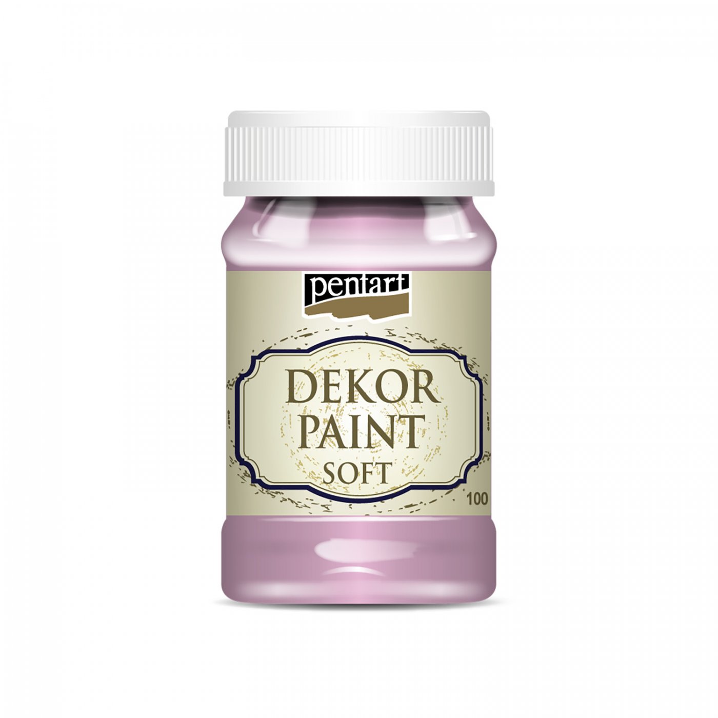 Barvy Dekor Paint Soft od Pentart jsou novinkou roku 2015. Dekor Paint je rychleschnoucí křídová barva na vodní bázi s vynikající kryvostí. Díky svému speciálnímu složení vytváří matný, na dotek měkký a hladký povrch, který lze snadno brousit. Barvy lze použít téměř na všechny povrchy: dřevo, keramiku, kov, kámen, stěnu a pod. Výborně se hodí k vytváření „odřeného“ povrchu. Vzájemným vrstvením této barvy v různých odstínech a následným broušením získáme povrch zajímavých a rozmanitých stylů. Barvy jsou výborné pro techniku Vintage a Shabby Chic. Dlouhodobou ochranu ozdobenému povrchu dodáme použitím voskované pasty nebo závěrečného laku. Pastu a lak aplikujte až po úplném vyschnutí barev. Na 1m2 je třeba přibližně 135 ml barvy.