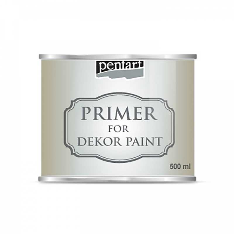 Primer určený pro barvy Dekor Paint od Pentart. Průhledný primer na vodní bázi slouží k přípravě podkladu pro samotným malováním barvami. Uzavře dekorovaný povrch a zabrání tak uvolnění starších pigmentů během nanášení barev. Barvy Dekor Paint Soft značky Pentart jsou novinkou roku 2015. Dekor Paint je rychleschnoucí křídová barva na vodní bázi s vynikající kryvostí. Díky svému speciálnímu složení vytváří matný, na dotek měkký a hladký povrch, který lze snadno brousit. Barvy lze použít téměř na všechny povrchy: dřevo, keramiku, kov, kámen, stěnu a pod. Výborně se hodí k vytváření „odřeného“ povrchu. Vzájemným vrstvením této barvy v různých odstínech a následným broušením získáme povrch zajímavých a rozmanitých stylů. Barvy jsou výborné pro techniku Vintage a Shabby Chic. Dlouhodobou ochranu ozdobenému povrchu dodáme použitím voskované pasty nebo závěrečného laku. Pastu a lak aplikujte až po úplném vyschnutí barev. Na 1m2 je třeba přibližně 135 ml barvy.