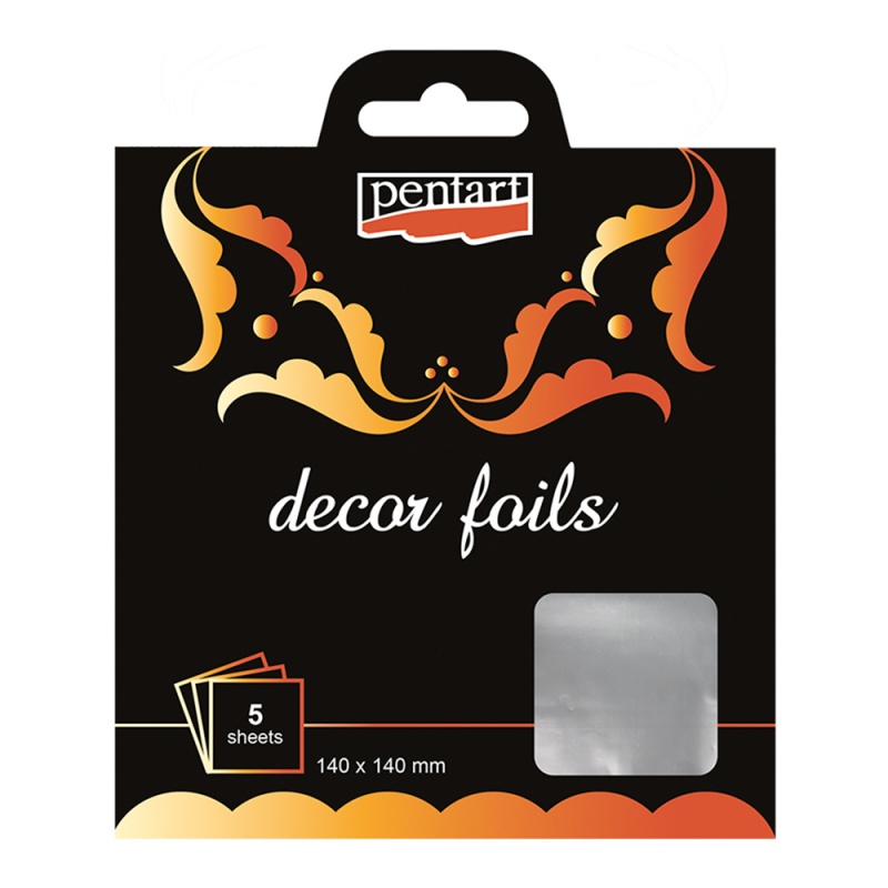 Balení obsahuje 5 ks dekorační metalické fólie s rozměrem 14 x 14 cm.