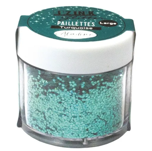 Třpytivé glitry svým zpracováním zajímavě lámou světlo, projektům dodávají neobvyklý diamantový lesk. Částice jsou relativně velké, baleny jsou v průhledné dózičce s pevně uzavíratelným víčkem. Tyrkysové třpytky mají mnohobarevné modré a zelenkavé odlesky.