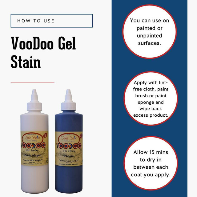 Všestrannost použití: VooDoo Gel Stain umožňuje různé způsoby nanášení, ať už dáváte přednost hadříku bez chloupků, štětci nebo aplikační podložce. Jednoduchý postup nanášení mořidla a stírání přebytečného množství zajišťuje uživatelsky přívětivý zážitek.