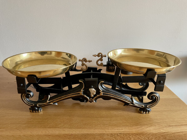 Mosazné misky na starožitné kuchyňské váhy, rozměry jsou uvedeny ve fotogalerii