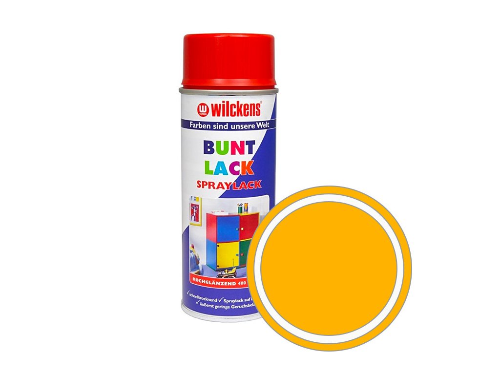 Německá syntetická vrchní barva ve spreji vysoký lesk Wilckens Spraylack Hochglanz Buntlack 400 ml, hořčicově žlutá