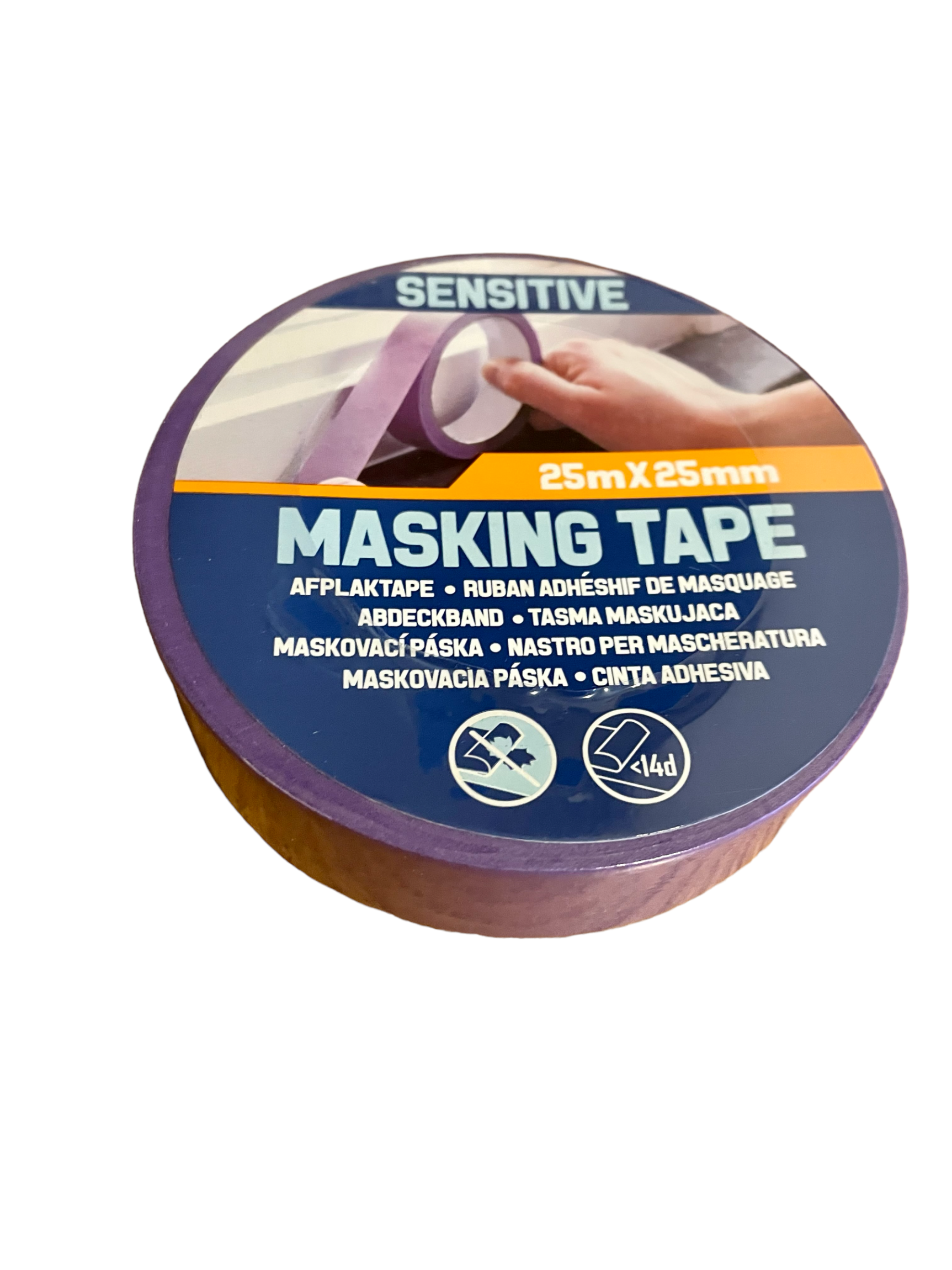 Speciální maskovací páska fialová – určená především na jemné povrchy (tapety, apod), s nízkou přilnavostí k povrchu