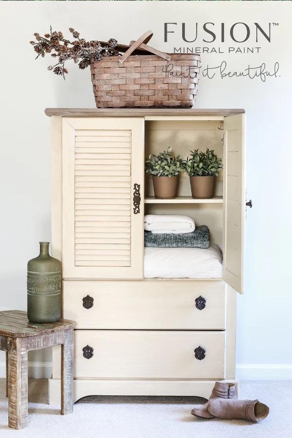FUSION Mineral Paint ™ má vrchní nátěr zabudovaný v sobě. Barva je voděodolná a nepotřebuje závěrečné fixování lakem nebo voskem. Lak můžete použít v případě, že chcete docílit extra lesklého povrchu. Vosk například, když následně chcete docílit patiny.