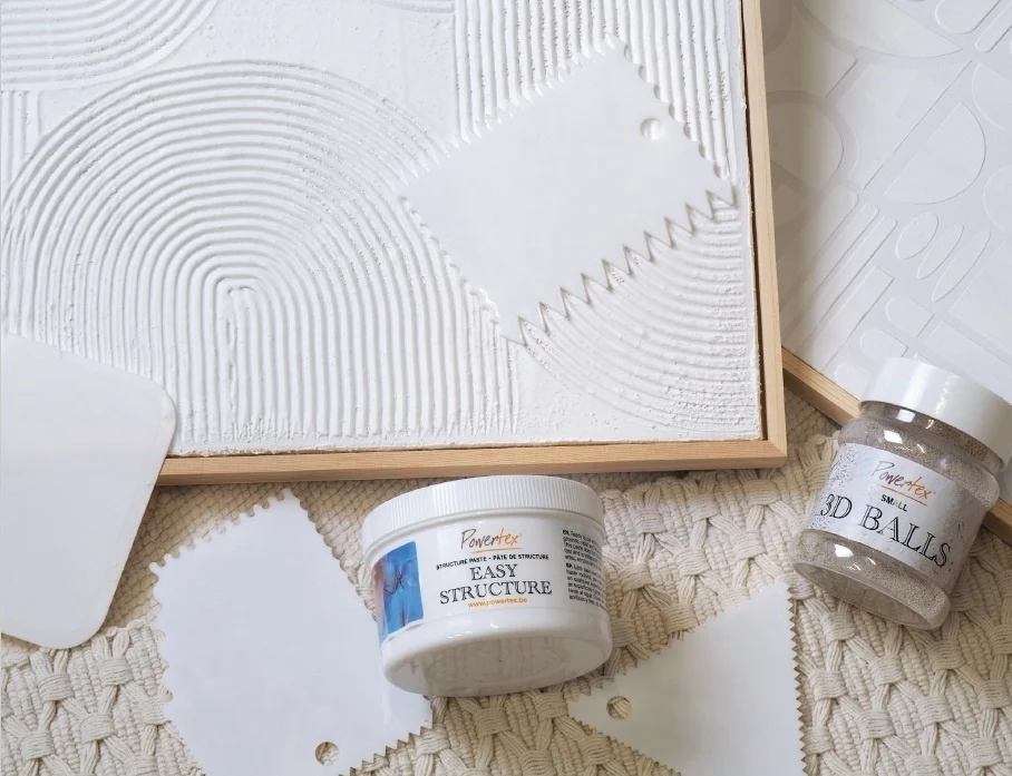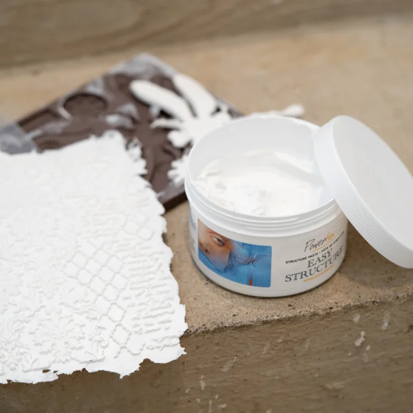 Powertex Easy Structure Paste je snadno použitelný způsob, jak vytvářet rafinované textury nebo vyvýšené vzory nebo takzvané „vyvýšené šablony“ pomocí šablon a dává strukturu vašim objektům a uměleckým dílům.