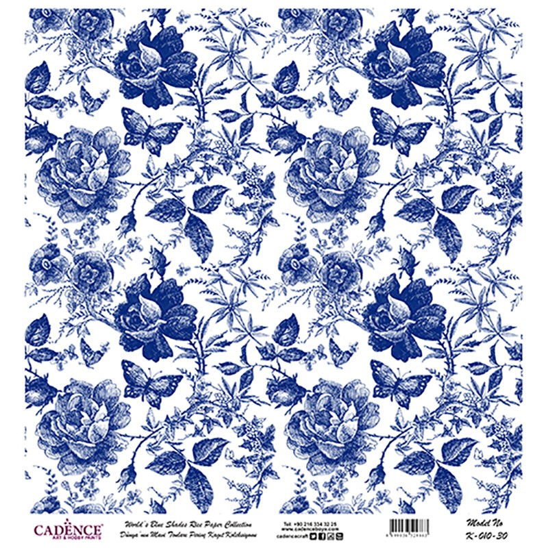 Rýžový papír 30×30 K-010, Modré růže -Cadence