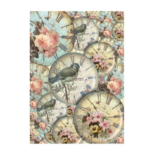 Rýžový papír A4 – 149 -Hodiny s ptáčkem – Cadence