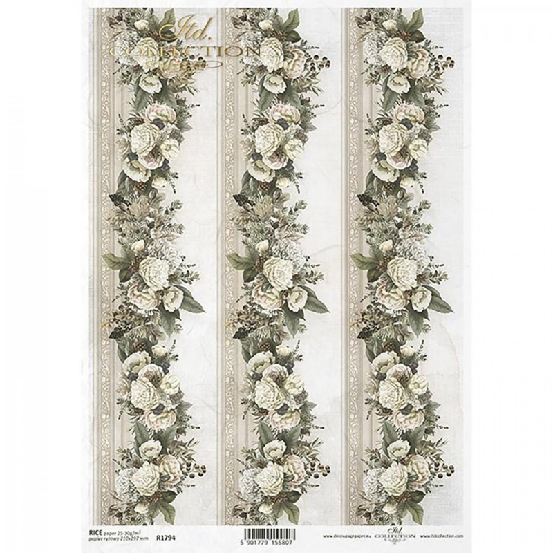 / Rýžový papír A4- R1794 – květiny -bordura