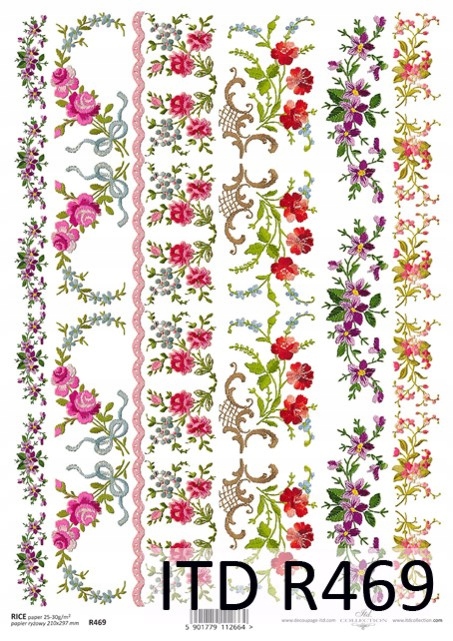 / Rýžový papír A4 Itd-R0469-květinové proužky