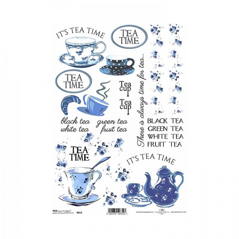 Rýžový papír A4 – Nápisy – Tea Time modrý (0413)