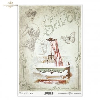 Lehký, jemný, ale zároveň pevný papír ideální na decoupage. Rýžový papír  je mírně průhledný a zblízka jsou v něm viditelná rýžová vlákna. Papír tak získává na omak jemnou strukturu.