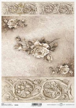 Lehký, jemný, ale zároveň pevný papír ideální na decoupage. Rýžový papír  je mírně průhledný a zblízka jsou v něm viditelná rýžová vlákna. Papír tak získává na omak jemnou strukturu.