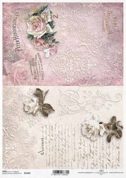 Lehký, jemný, ale zároveň pevný papír ideální na decoupage. Rýžový papír  je mírně průhledný a zblízka jsou v něm viditelná rýžová vlákna. Papír tak získává na omak jemnou strukturu.