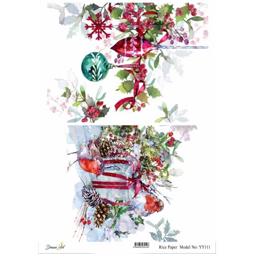 Rýžový papír A4 – Vánoce a zima – Dream Art – Vánoční baňky a červenky