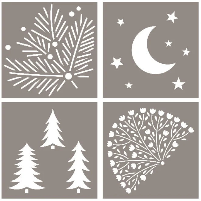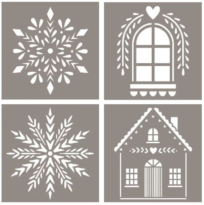 Šablony jsou malé a lze je snadno použít na stěny, nábytek a další k vytvoření krásných vzorů, které vydrží po celý život! Nebo je použijte k vytvoření vlastních vánočních doplňků a během chvilky proměňte svůj dům ve vánoční říši divů!