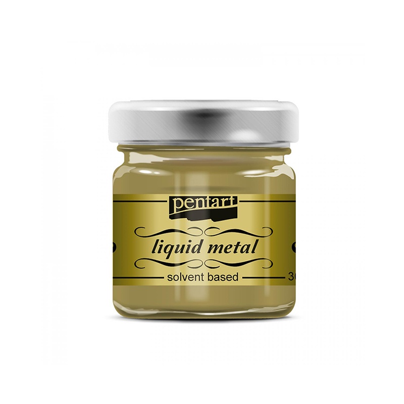 Tekutý kov od společnosti Pentart je syntetická barva s vysokým obsahem pigmentu, která imituje dokonalý kovový povrch.