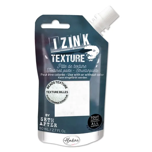 Strukturovací perličková pasta Izink Texture obsahuje drobné kuličky. Vytváří velmi zajímavé efekty, jemně zrnitý a lesklý povrch. Pastu je možno probarvit přimícháním akrylové barvy a vytvořit si tak celou paletu vlastních odstínů.
