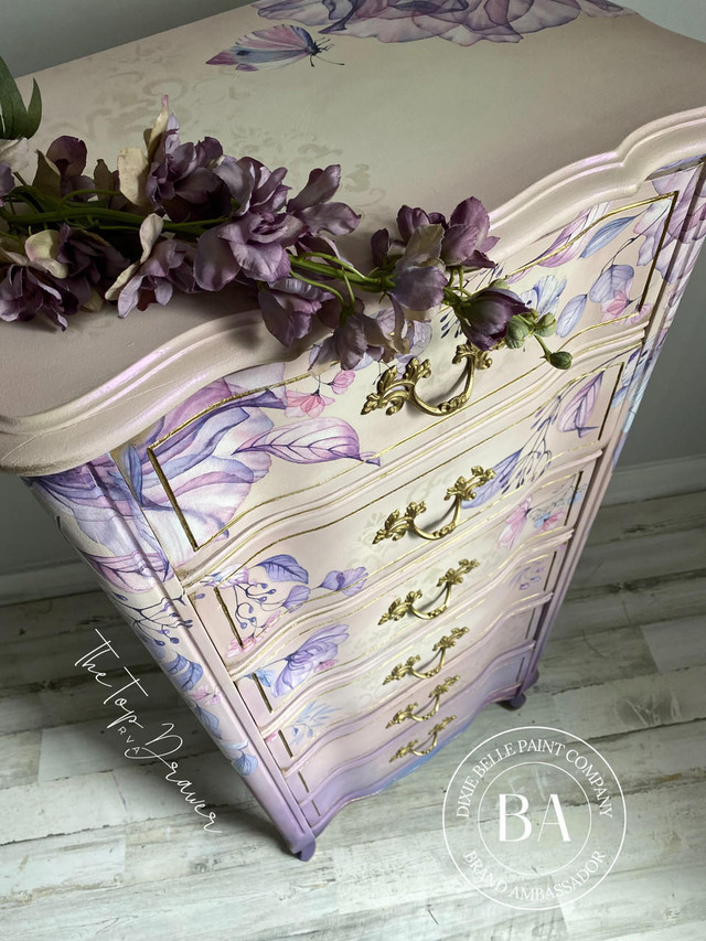 Jednoduše decoupage papar vložte do mokrého laku na kusu nábytku a poté znovu přelakujte 🙂