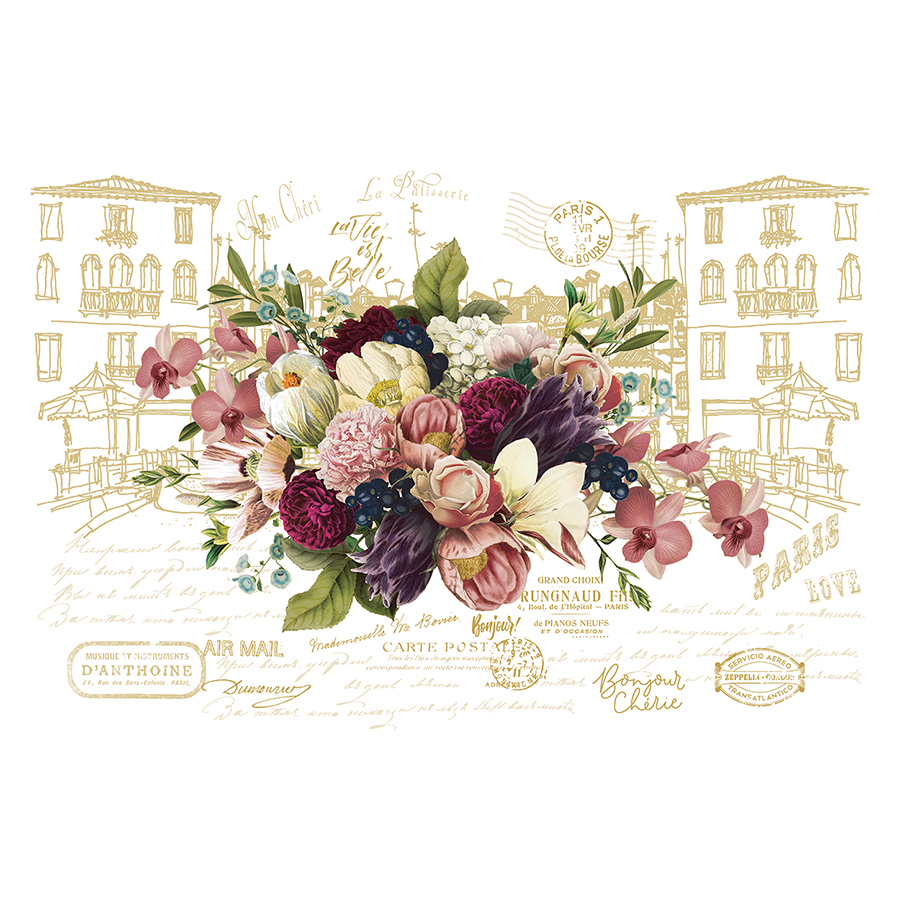 Každý design je srolovaný v tubě a má nosný list a voskový podkladový papír pro ochranu.