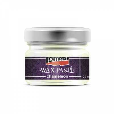 Vosková pasta (Chameleon wax paste) se základem včelího vosku a pomerančového oleje vytvoří na tmavém povrchu měnící se kovový třpytivý efekt, na bledém podkladu vytvoří krásně měnící se odlesky. Voskovou pastu naneste v tenké vrstvě a rovnoměrně ji rozetřete na předmět, který byl již zdoben, resp. natřený barvou. Pasty můžete nanášet i tak, aby se prolínaly a vytvořit tak zajímavé třpytivé efekty bez viditelných přechodů. Celková doba schnutí pasty je cca 3 hodiny.
